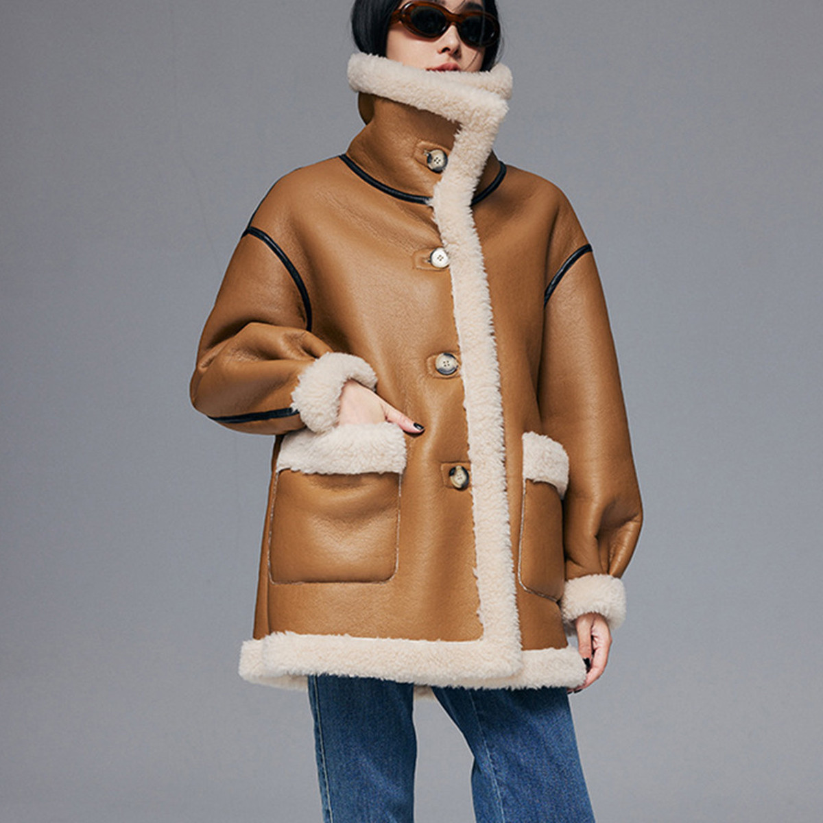 론데즈 울100 양털 리버시블 톰보이 무스탕 자켓 코트