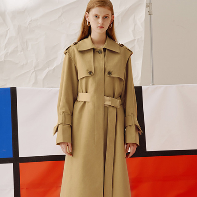 [론데즈메종] 윈드 가죽패치스트랩 트임 롱 트렌치 자켓