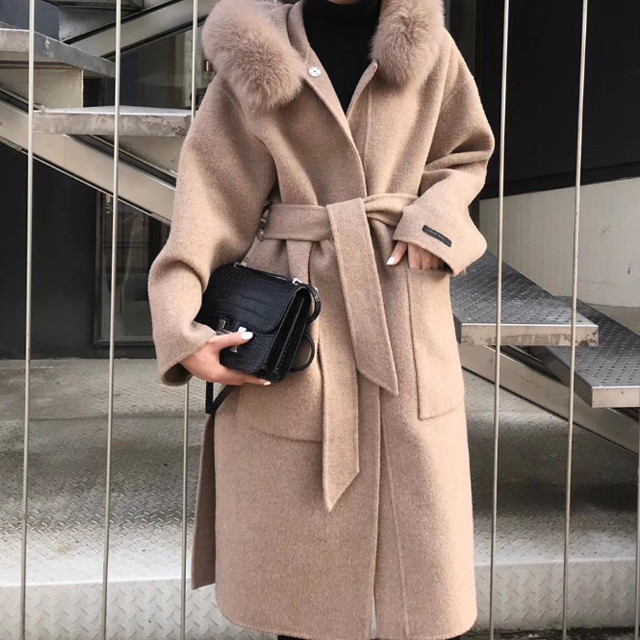[론데즈메종] 햅번 폭스퍼 양면 캐시미어 울 후드 롱코트 (2Colors)