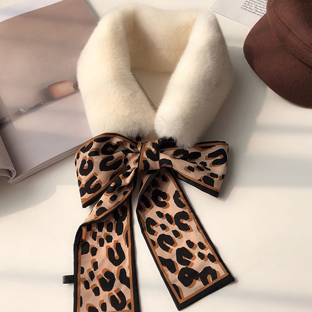 [론데즈메종] 레오파드 리본 숏 컬러 페이크 래빗퍼 머플러 (8Colors)
