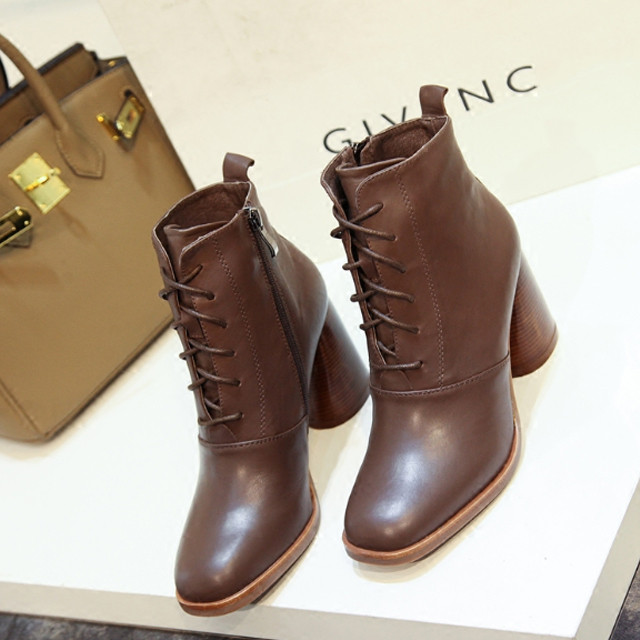 [론데즈메종] 리얼소가죽 아웃솔 끈 마틴 숏부츠힐 (2Colors)
