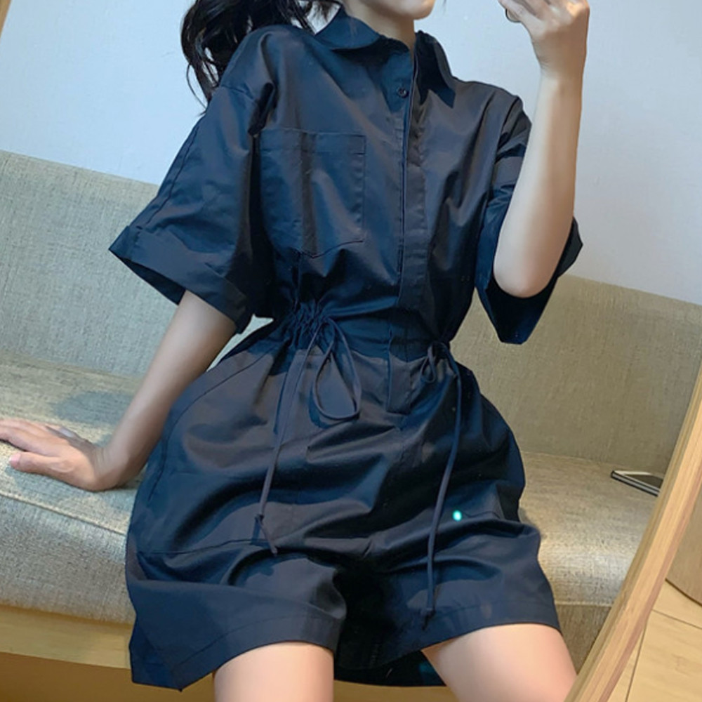 린넨 박시핏 반팔 여름 허리끈조절 점프수트 2컬러