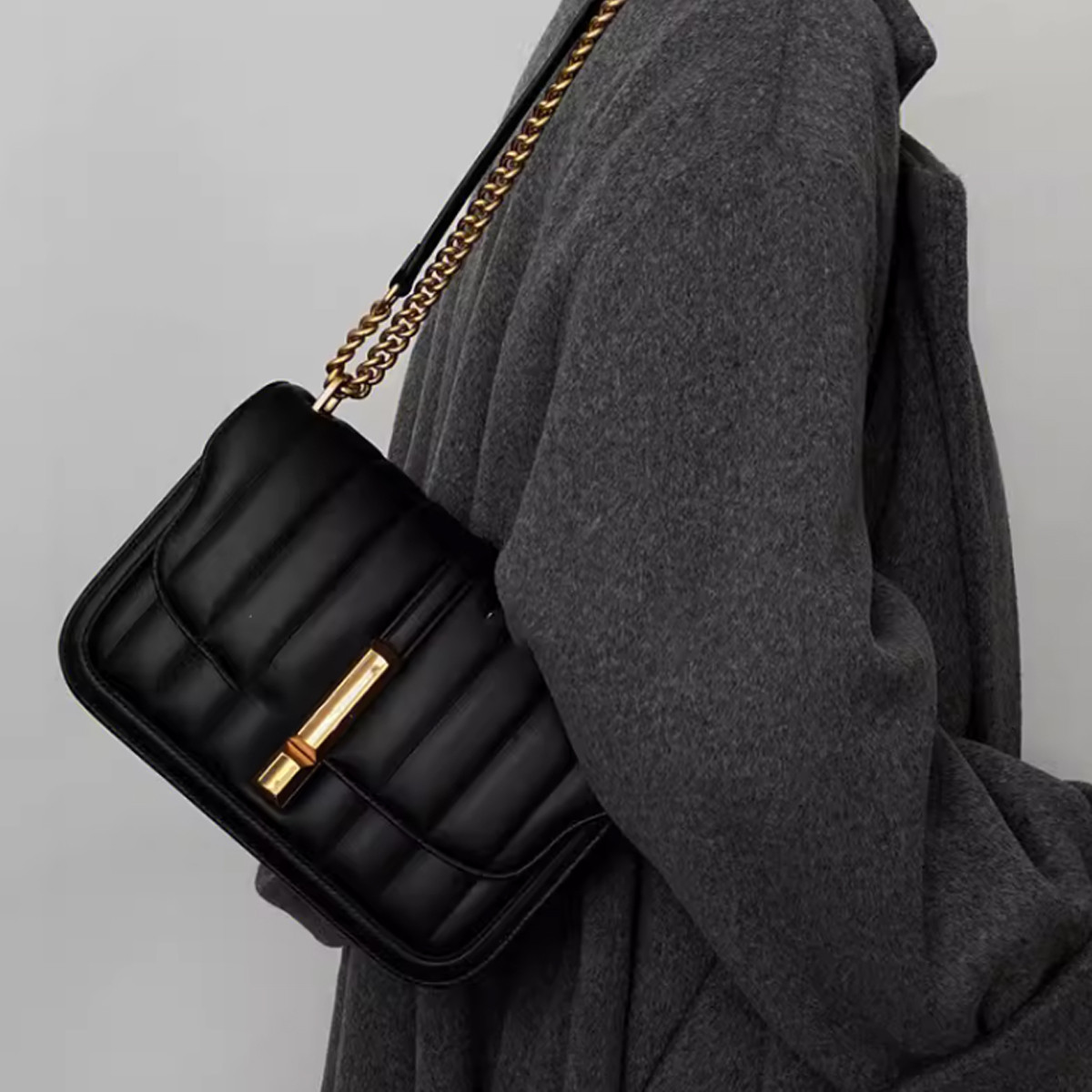 론데즈 체인 모던 스퀘어 가죽 숄더 크로스백 데일리