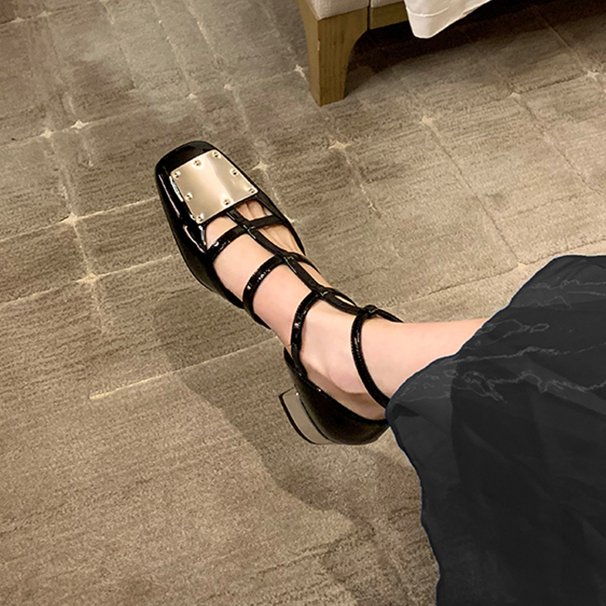 D 파리지앵 발레리나 플랫 금속 버클 메리제인 샌들 힐