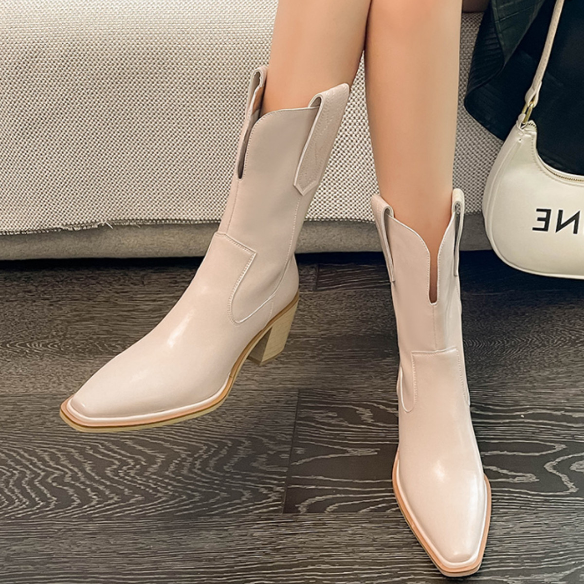 이자벨 리얼소가죽 웨스턴 미들 봄 가을 싱글 숏 수제 부츠힐 2컬러