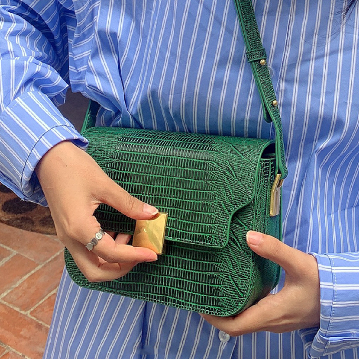 [당일배송제품]페스틴 골드 스퀘어 버클 크로커다일 무늬 PU가죽 미니 모던 크로스 숄더백 2컬러