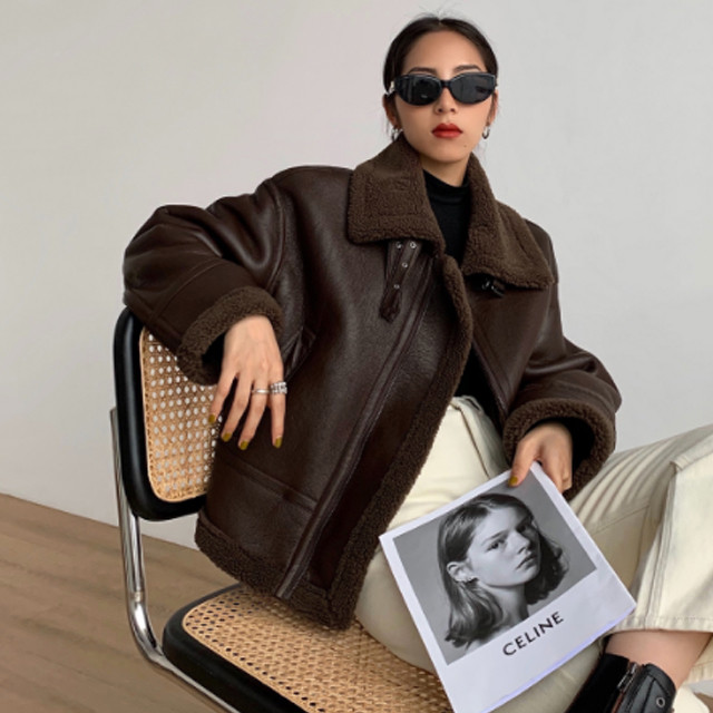 버클 하이넥 레더 램스킨 무스탕 가죽 자켓 코트 2컬러