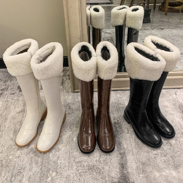 셀린 수제 리얼 소가죽 양털 겨울 롱 부츠 힐 3컬러