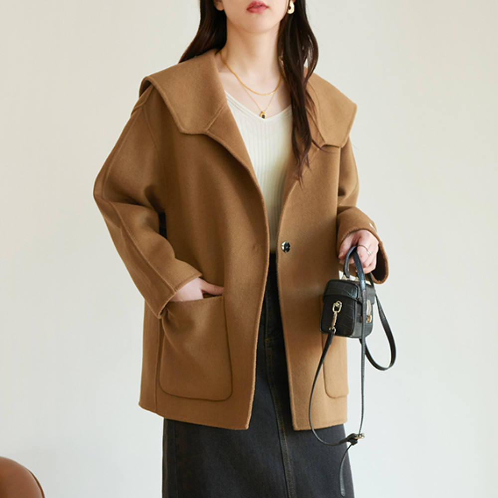 여성 캐시미어 울 혼방 핸드메이드 양면 하프 루즈핏 코트