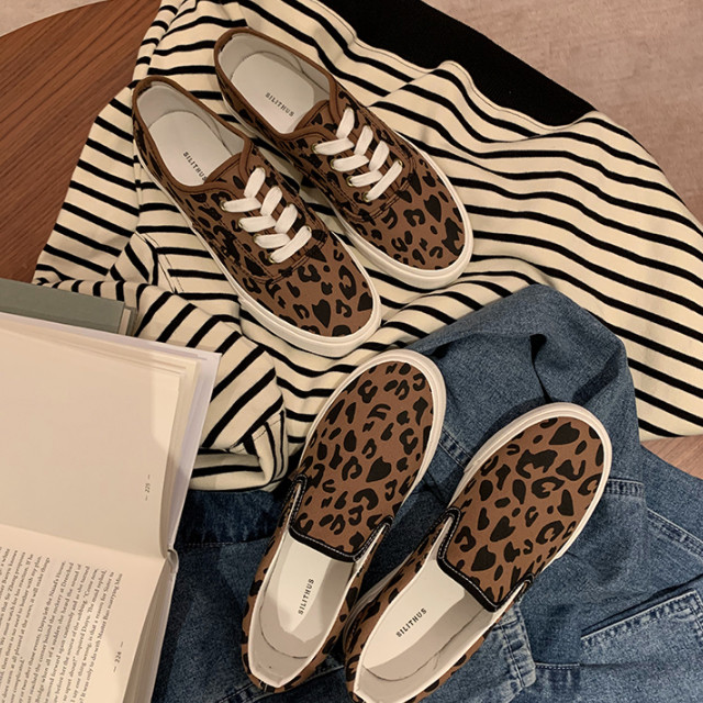 레오파드 호피 패턴 심플 캔버스 슬립온 스니커즈 운동화