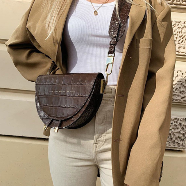 [론데즈메종] 하프문 크로커다일 소가죽 새틀 숄더백 3컬러