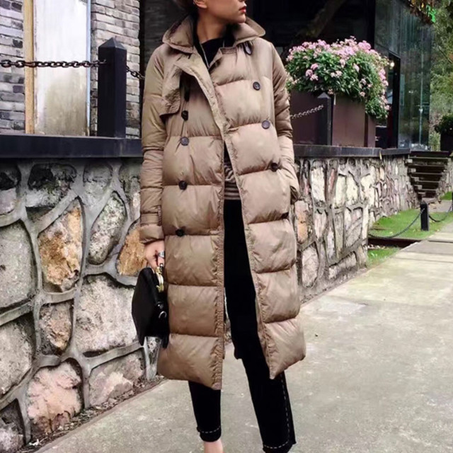 유러피안 더블브레스트 화이트 덕다운 오리털 트렌치 롱 패딩 자켓 2컬러
