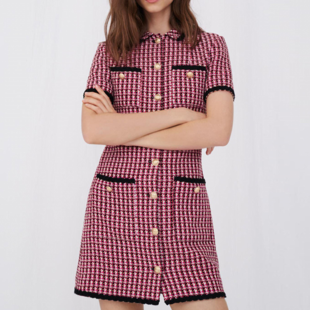 마제 라펠 트위드 반팔 비스코스 하객 원피스