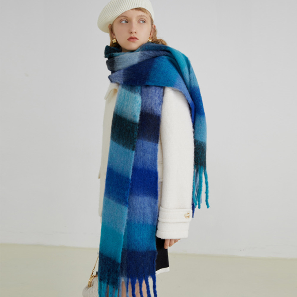 빅와이드 멀티 컬러 빅체크 도톰 울 겨울 디자이너 롱 머플러 숄 목도리 3컬러