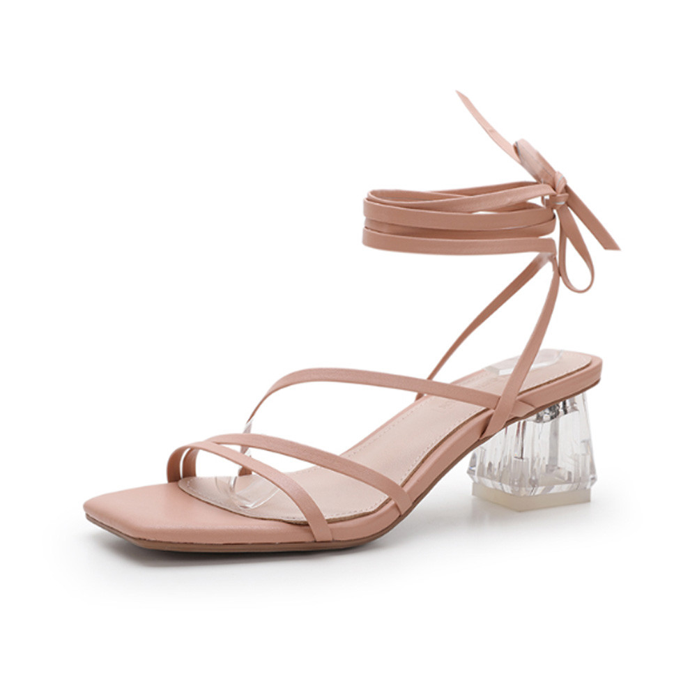 [론데즈메종] 레이스업 발목 스트랩 라인 유리 굽 샌들힐 3컬러