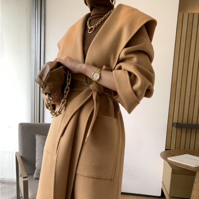 로에 후드 숄 카라 루즈핏 캐시미어 양면 울100% 롱코트 3컬러