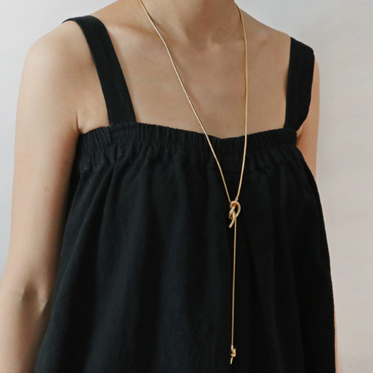 [론데즈메종] 빈티지 골드 써지컬스틸 심플 볼드체인 매듭 롱 드롭 목걸이 네크리스