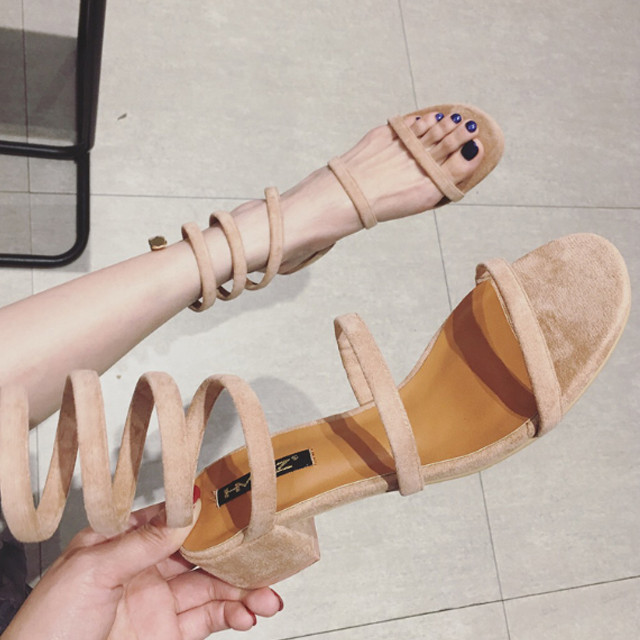 [론데즈메종] 와인딩 로마 스프링 스웨이드 글래디에이터 샌들힐 (2Colors)