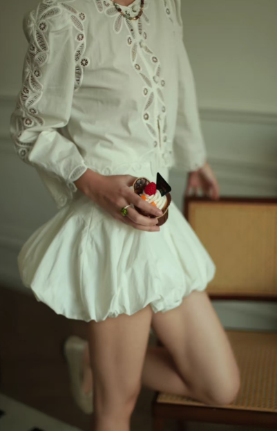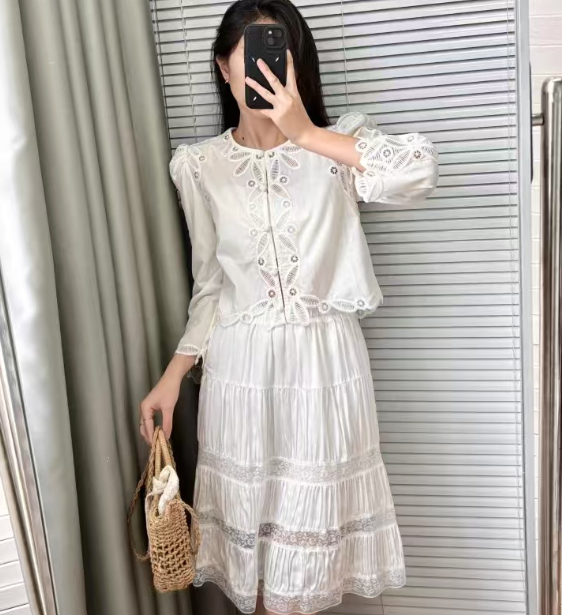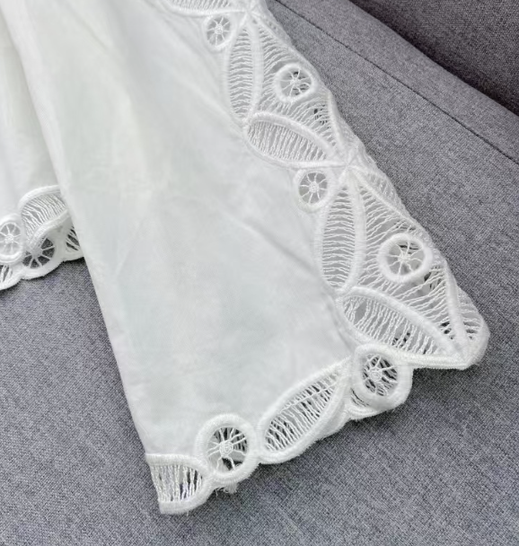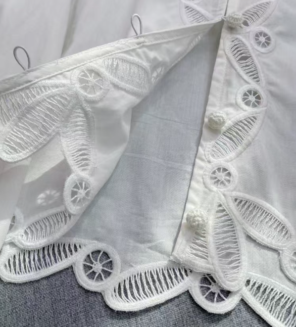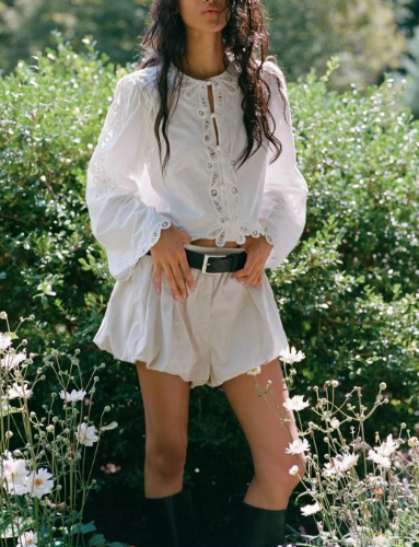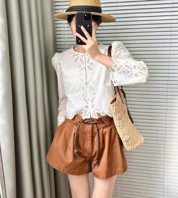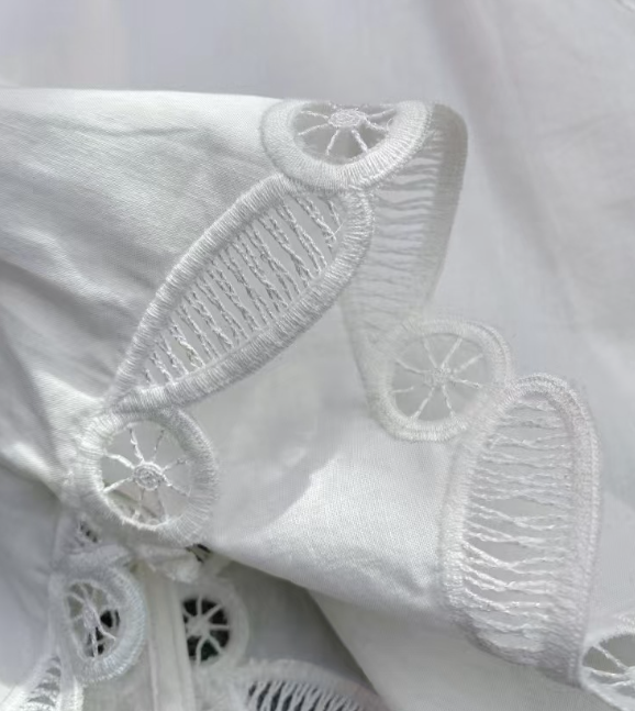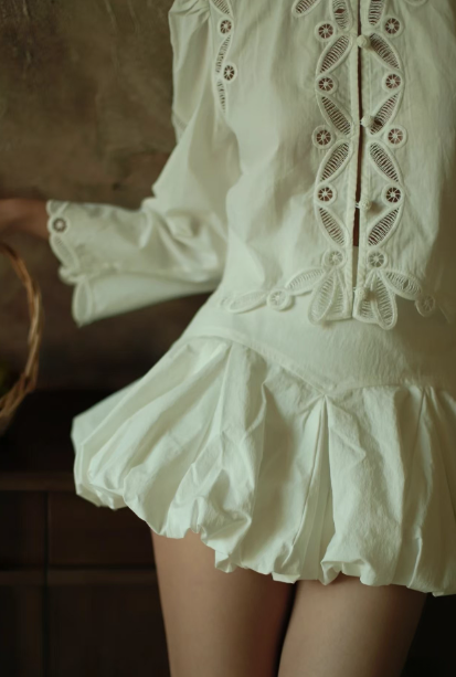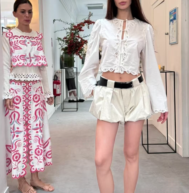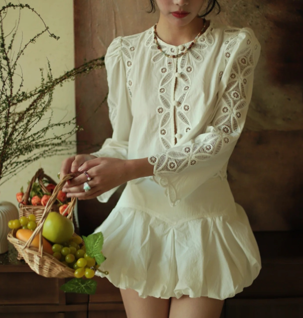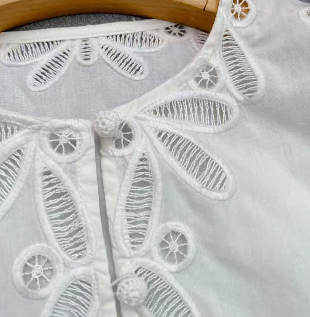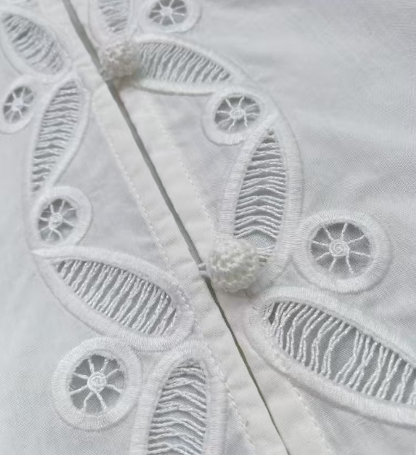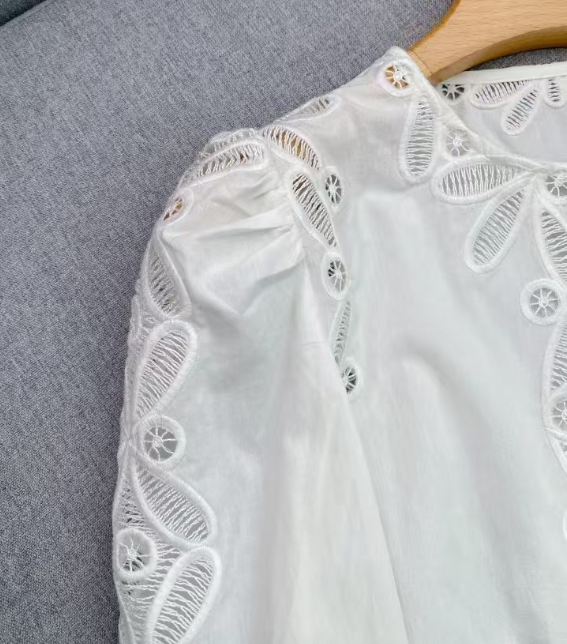 수공예 자수로 제작된, 명품스타일 프렌치 자수 크롭 블라우스