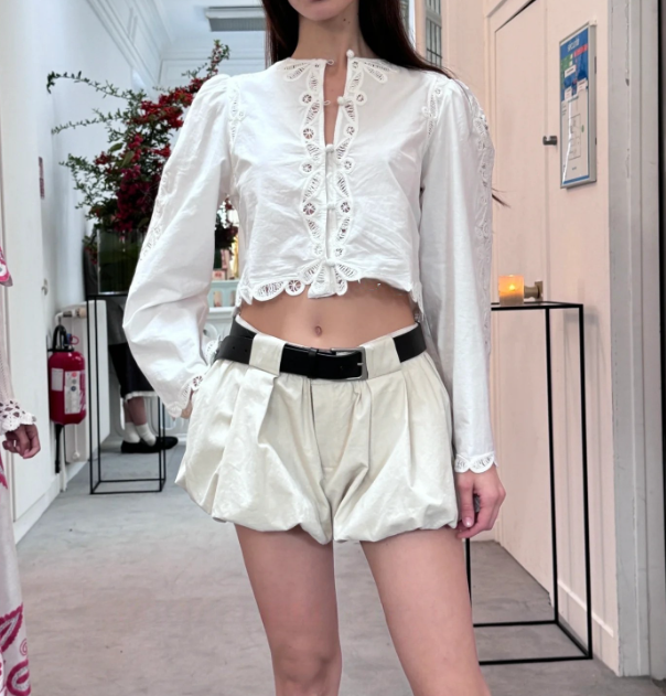 론데즈 씨뉴욕 프렌치 자수 슬리브 크롭 블라우스