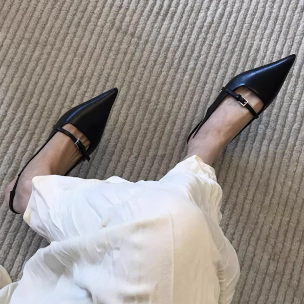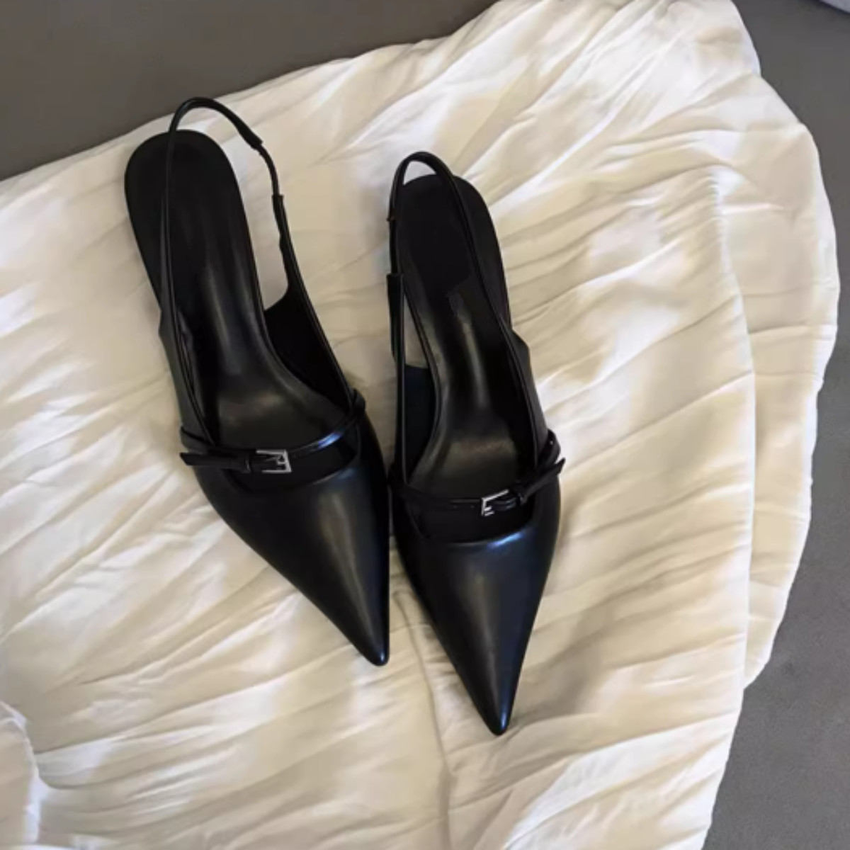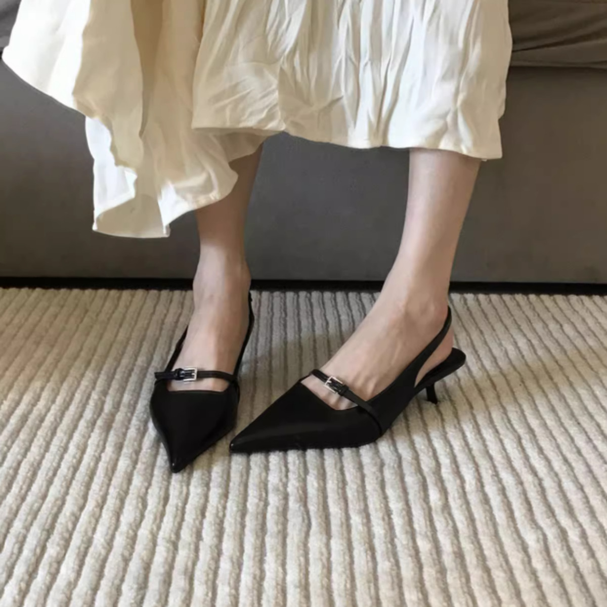 론데즈 버클 키튼힐 슬링백 뾰족구두 스틸레토 힐