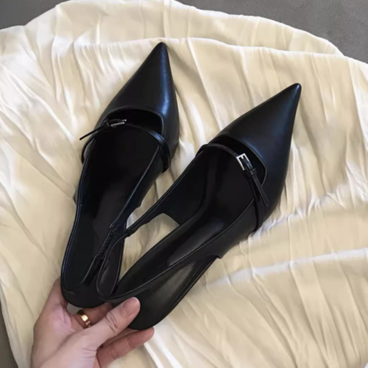 트렌디한 버클 포인트와 뽀족한 앞코 디테일로