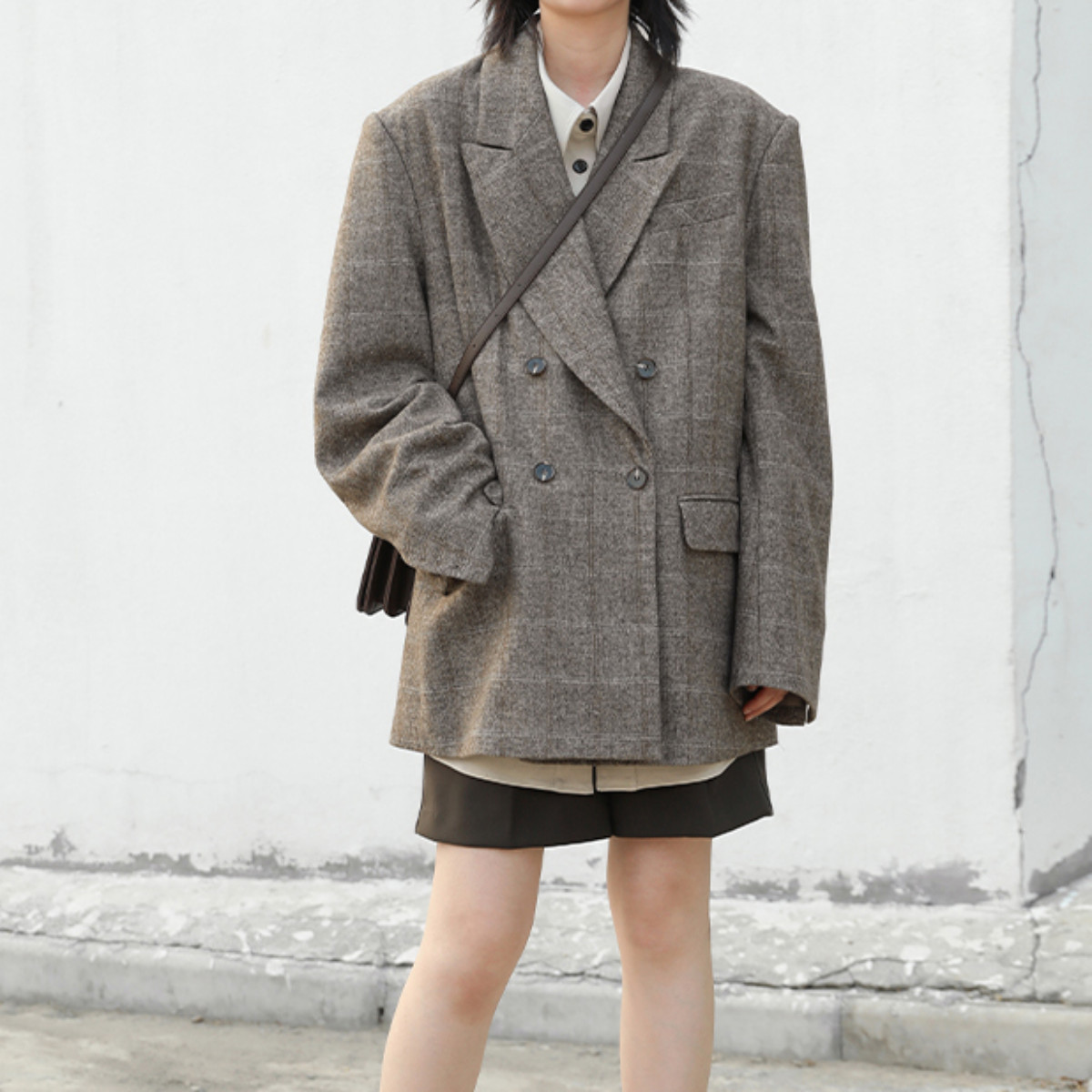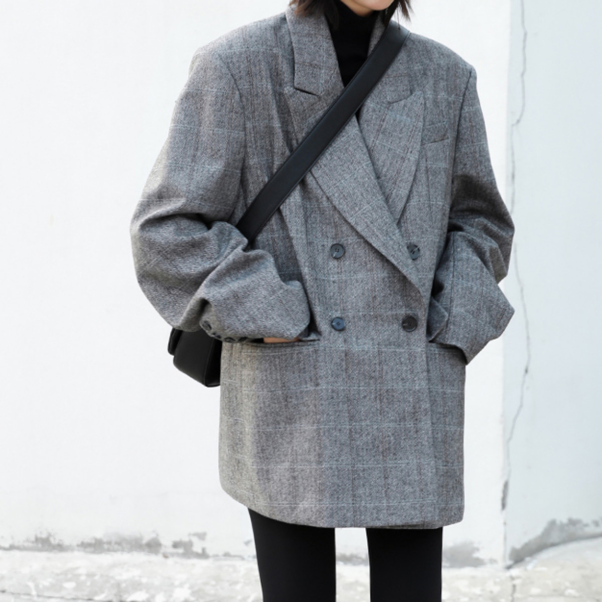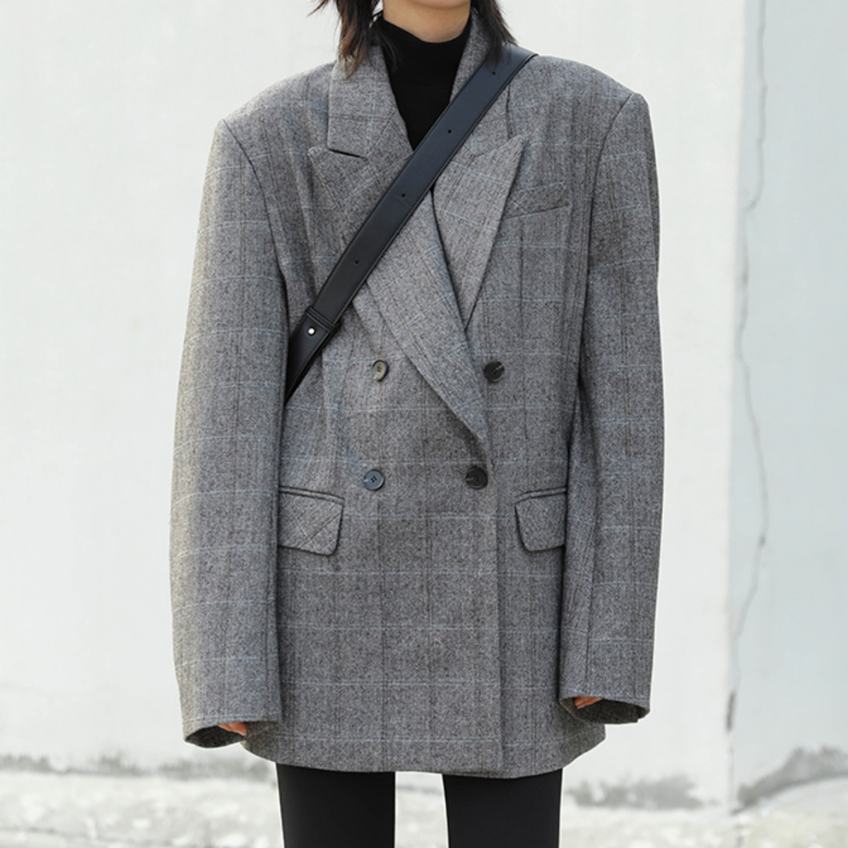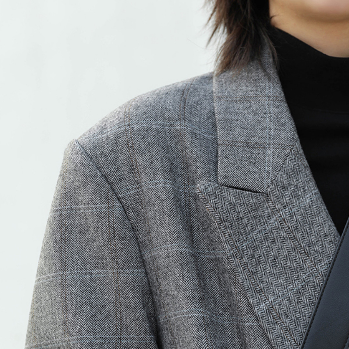 론데즈 체크 블레이저 와이드숄더 여성 봄 가을