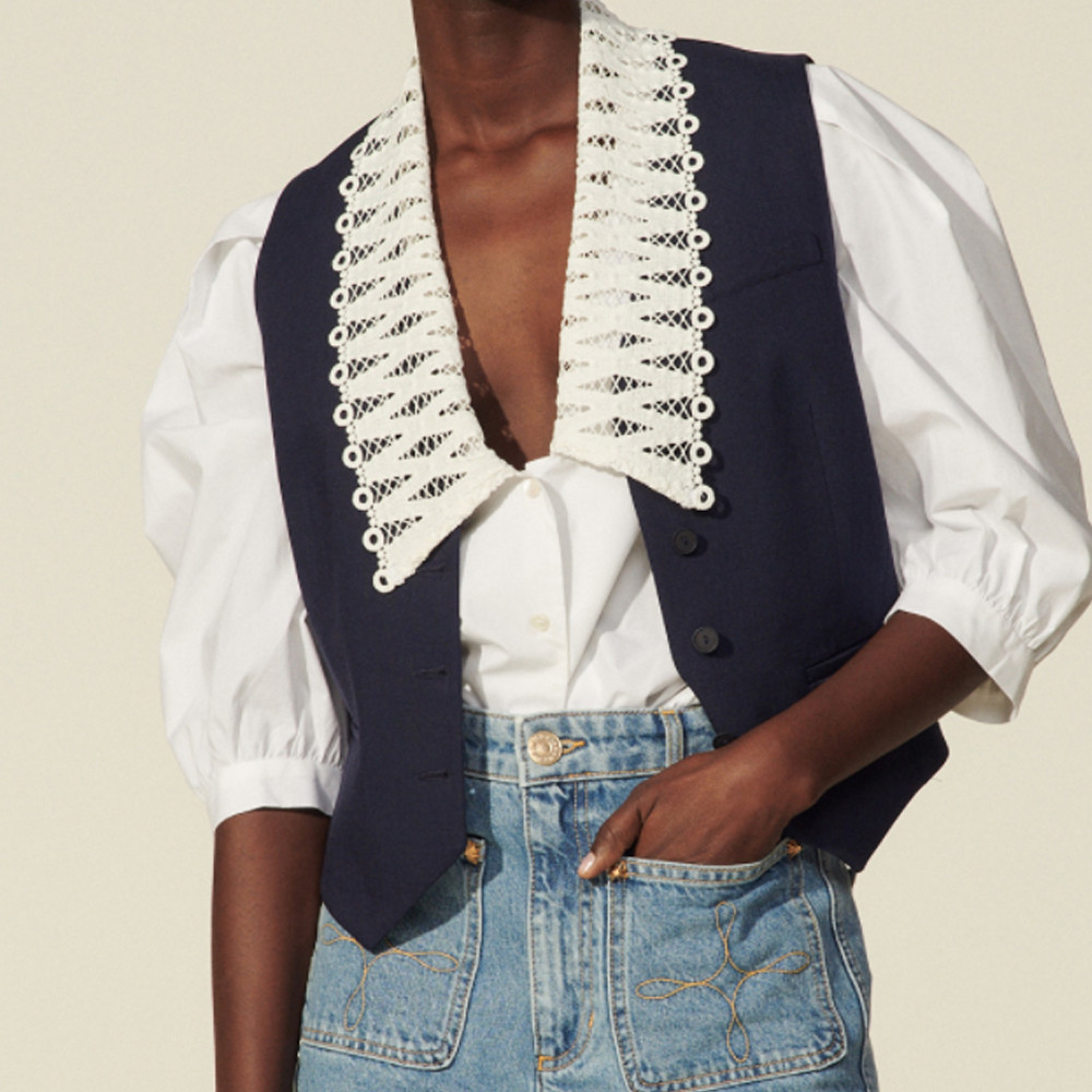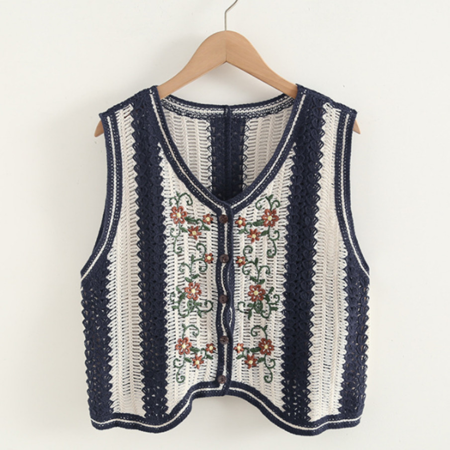 프렌치 자수 크롭 니트 조끼 여성 여름 레이어드 베스트