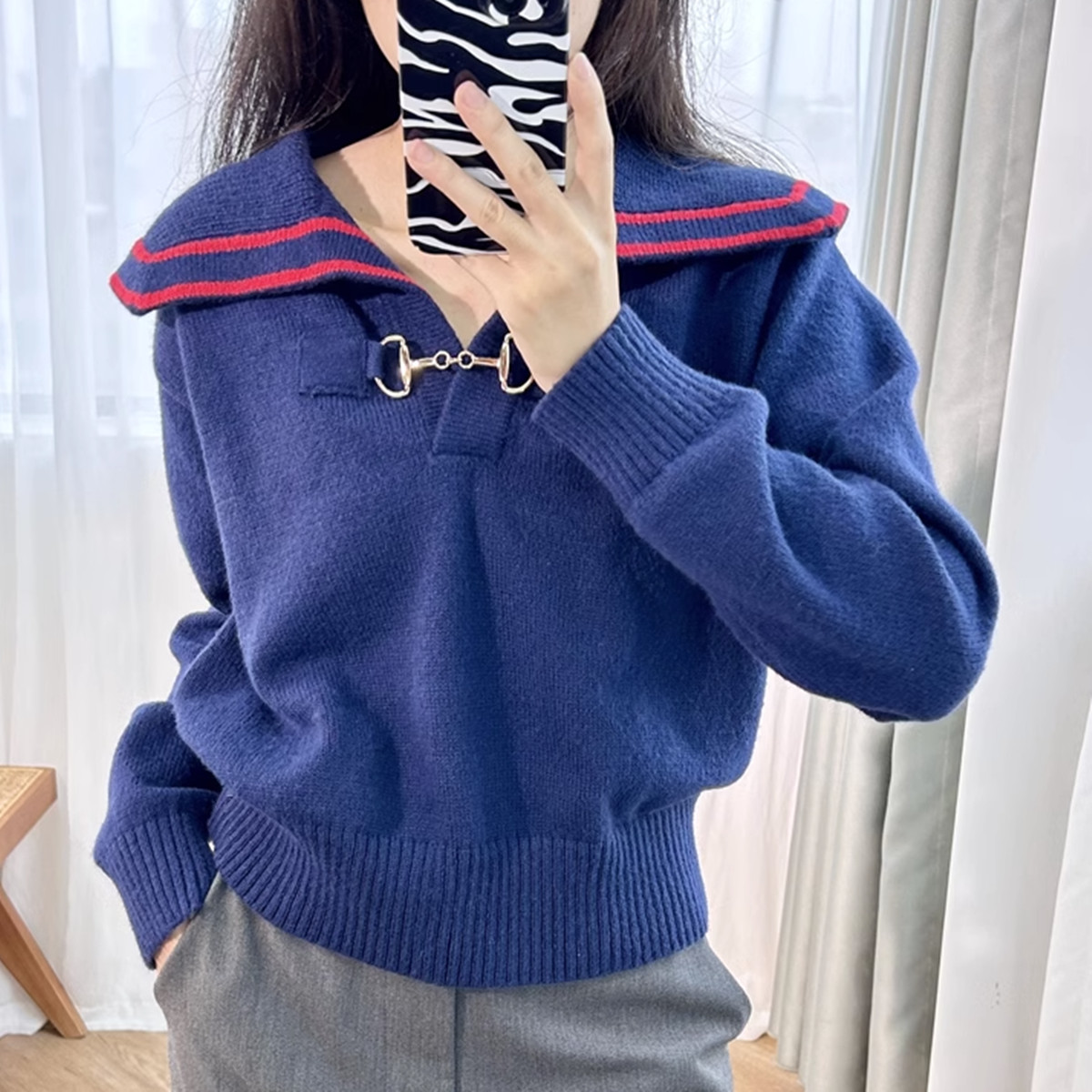 론데즈 올드머니룩 금장 세일러 칼라 울 니트 스웨터
