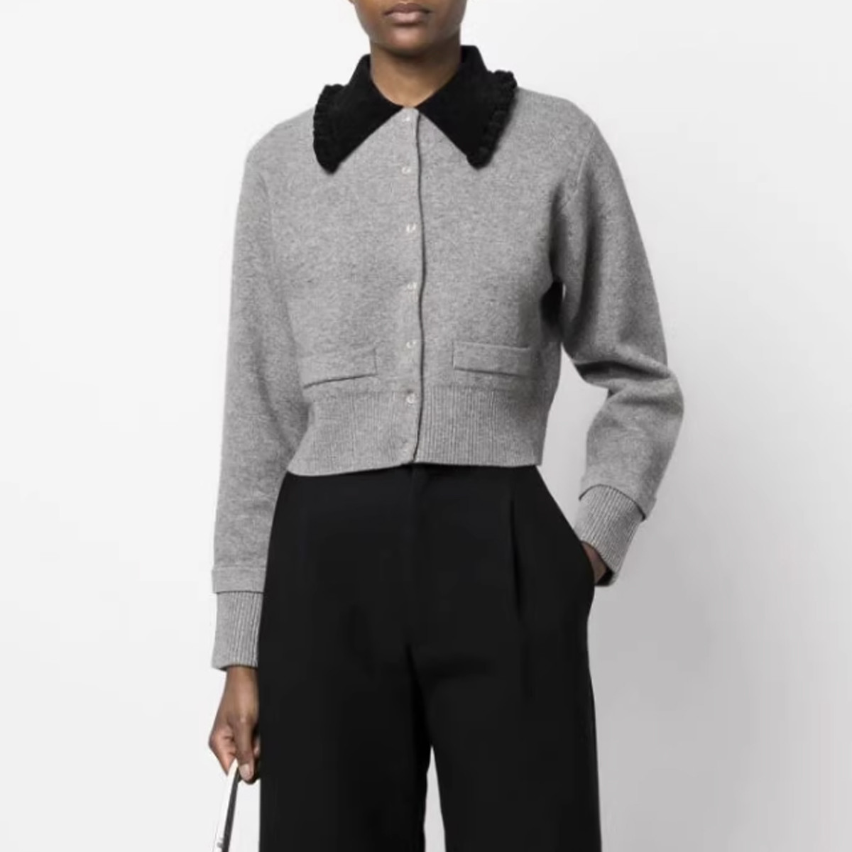 론데즈 단톤 가디건 가을 겨울 배색 카라 숏 울캐시미어 니트 카디건