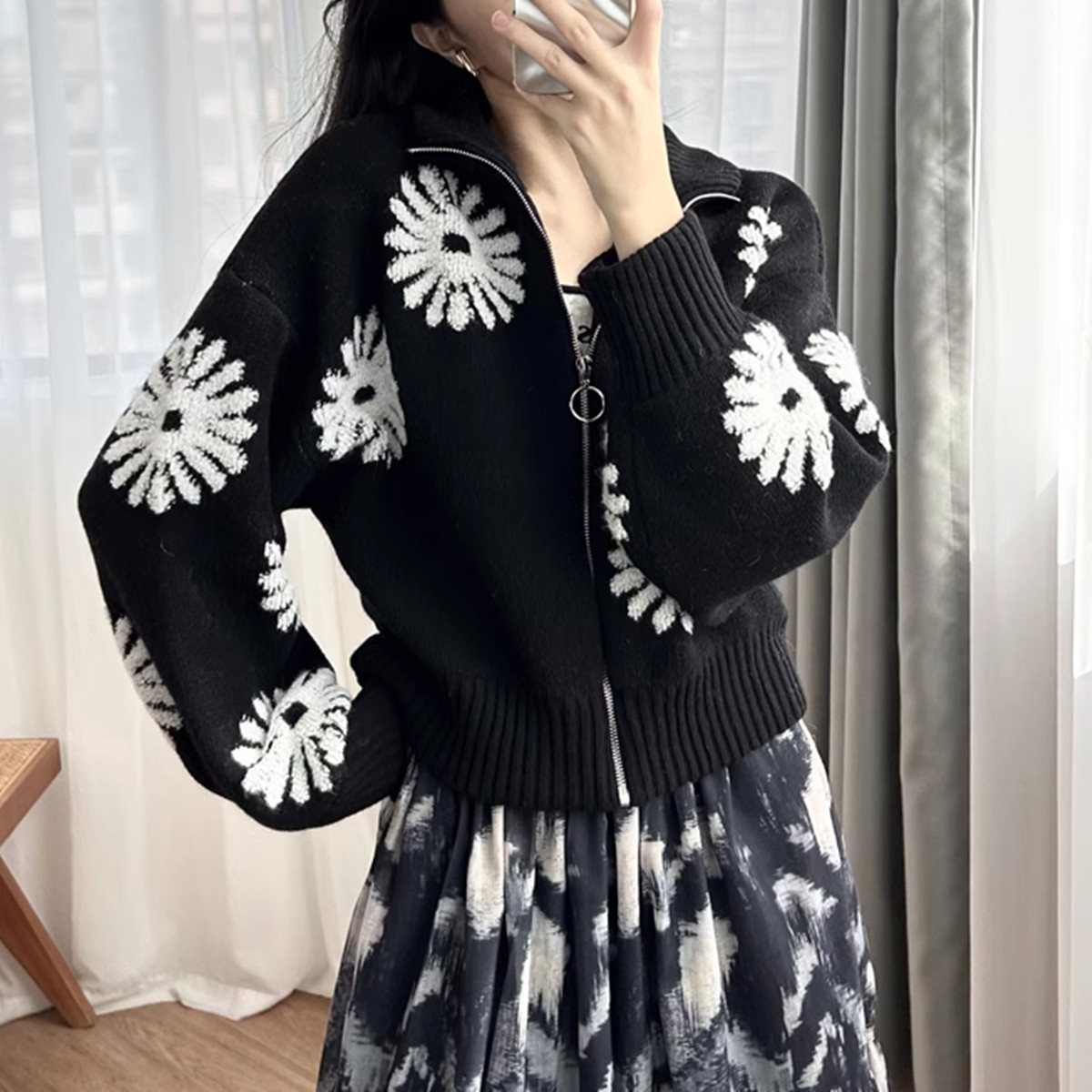 론데즈 노르딕니트 데이지 울 하이넥 집업 스웨터