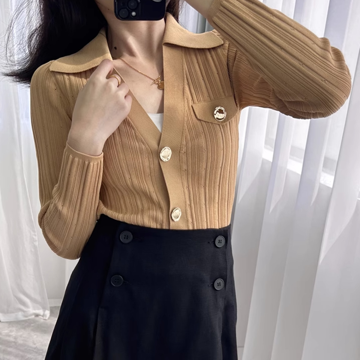 론데즈 올드머니룩 가디건 브이넥 칼라넥 골지 슬림 니트 탑