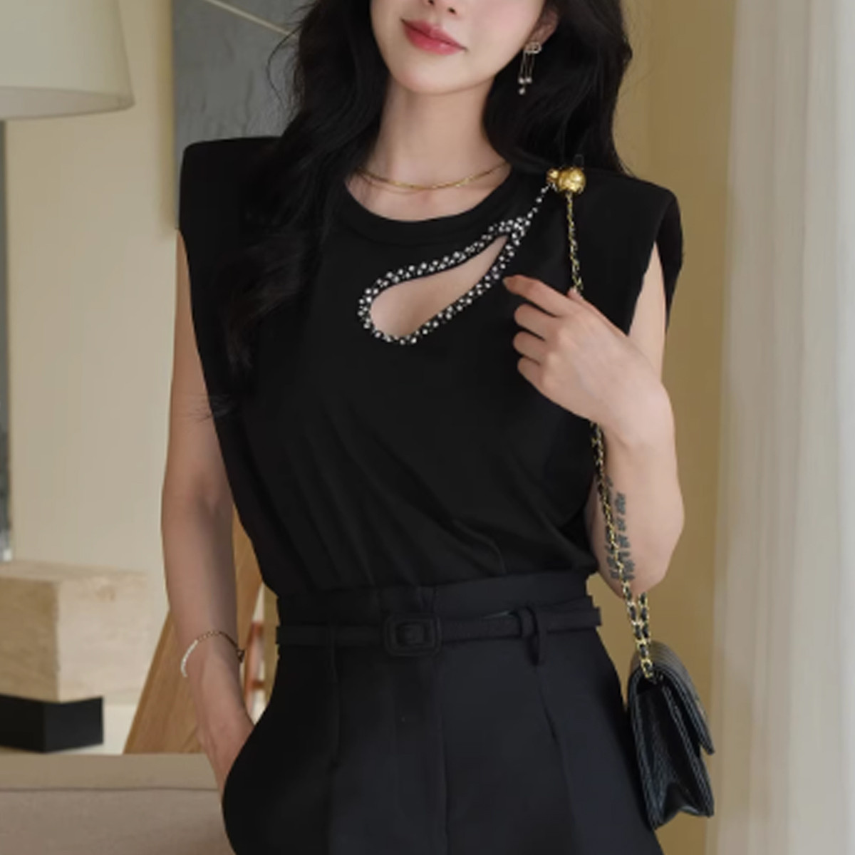 어깨패드 나시 민소매 지르코니아 큐빅 여름 티셔츠 탑 빅사이즈