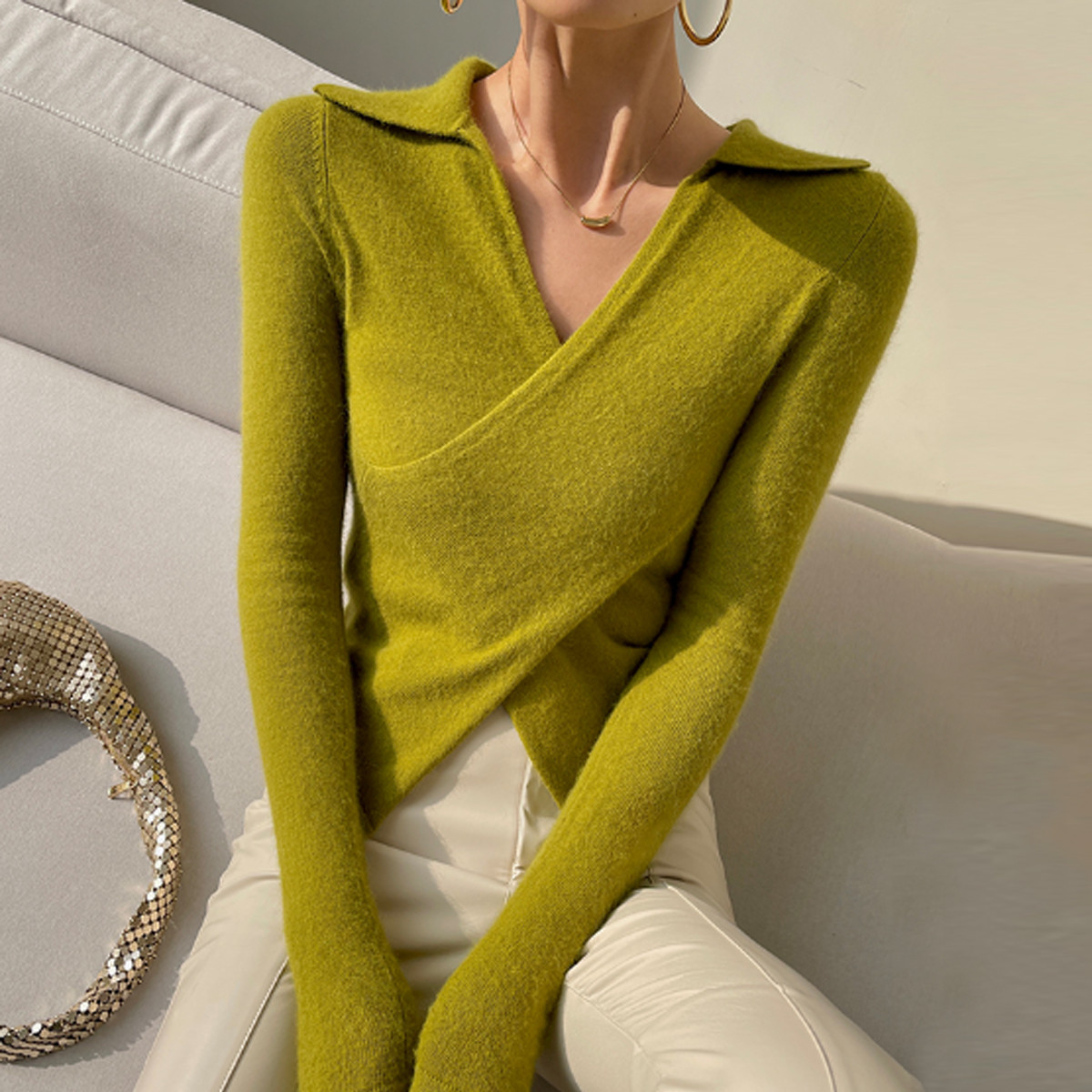 론데즈 카라 풀오버 크로스 랩 V넥 브이넥 컬러 슬림 니트 탑 티 3컬러