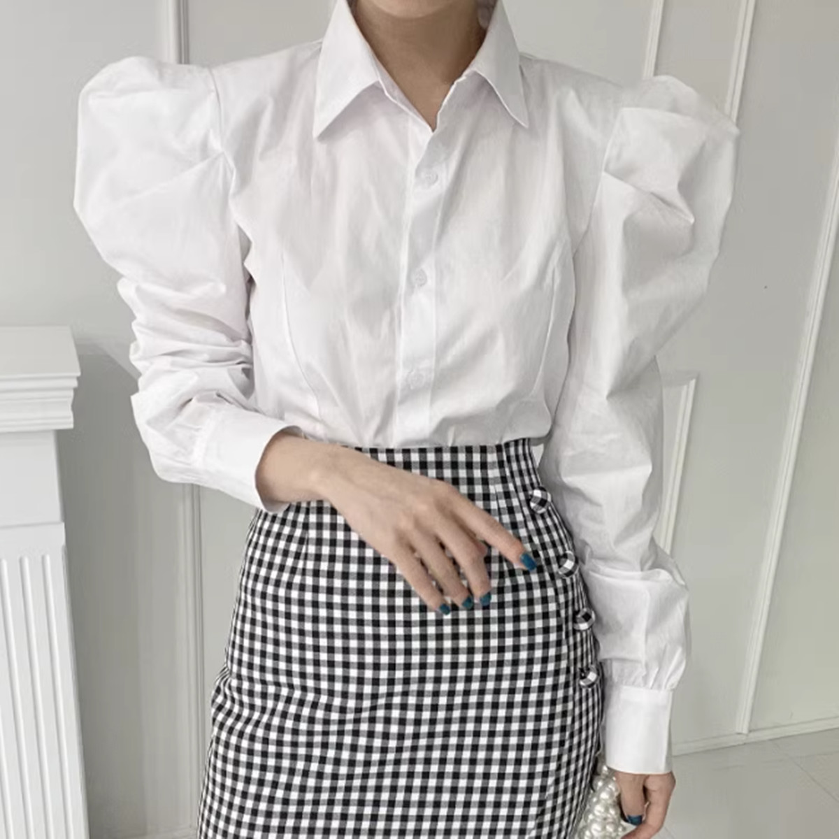 론데즈 오버테이크셔츠 퍼프소매 벌룬 화이트 셔츠 봄 가을