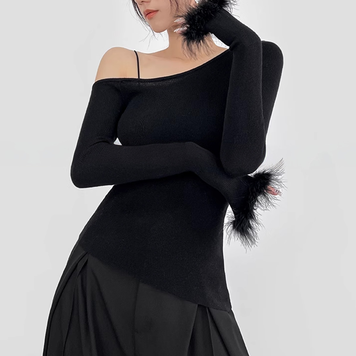 론데즈 퍼소매 오프숄더니트 캐시미어 앙고라 슬림 티셔츠