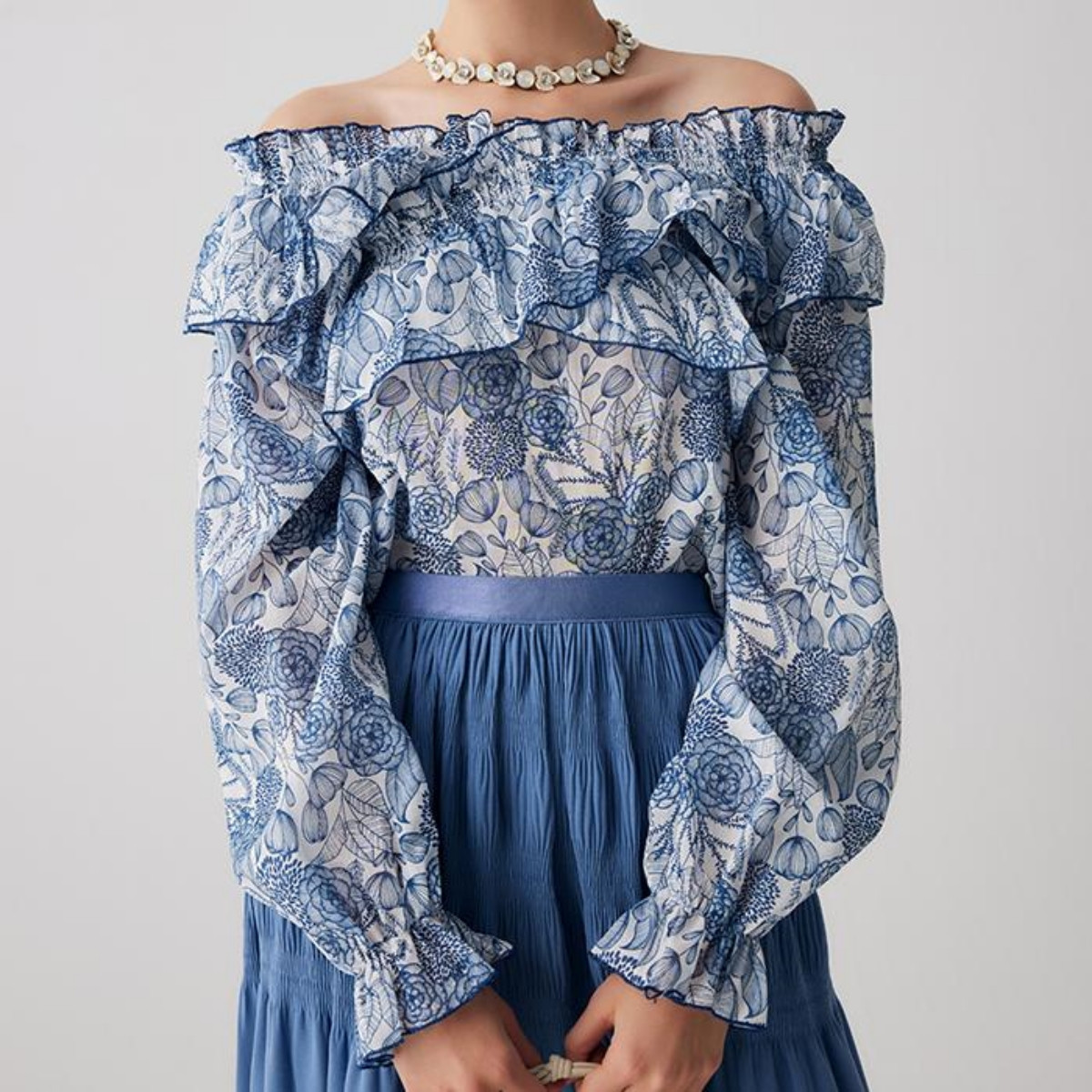 론데즈 홀리데이 새틴블라우스 오간자블라우스 오프숄더블라우스