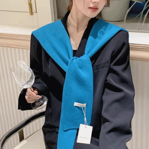 론데즈 어깨숄가디건 울캐시미어 레이어드 어부바 니트