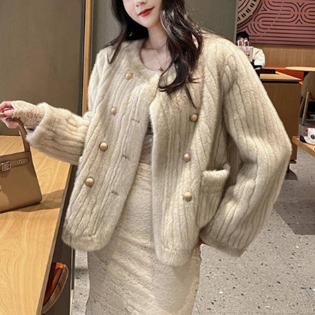 론데즈 에코퍼 숏 밍크코트 모피 자켓 퍼 아이보리