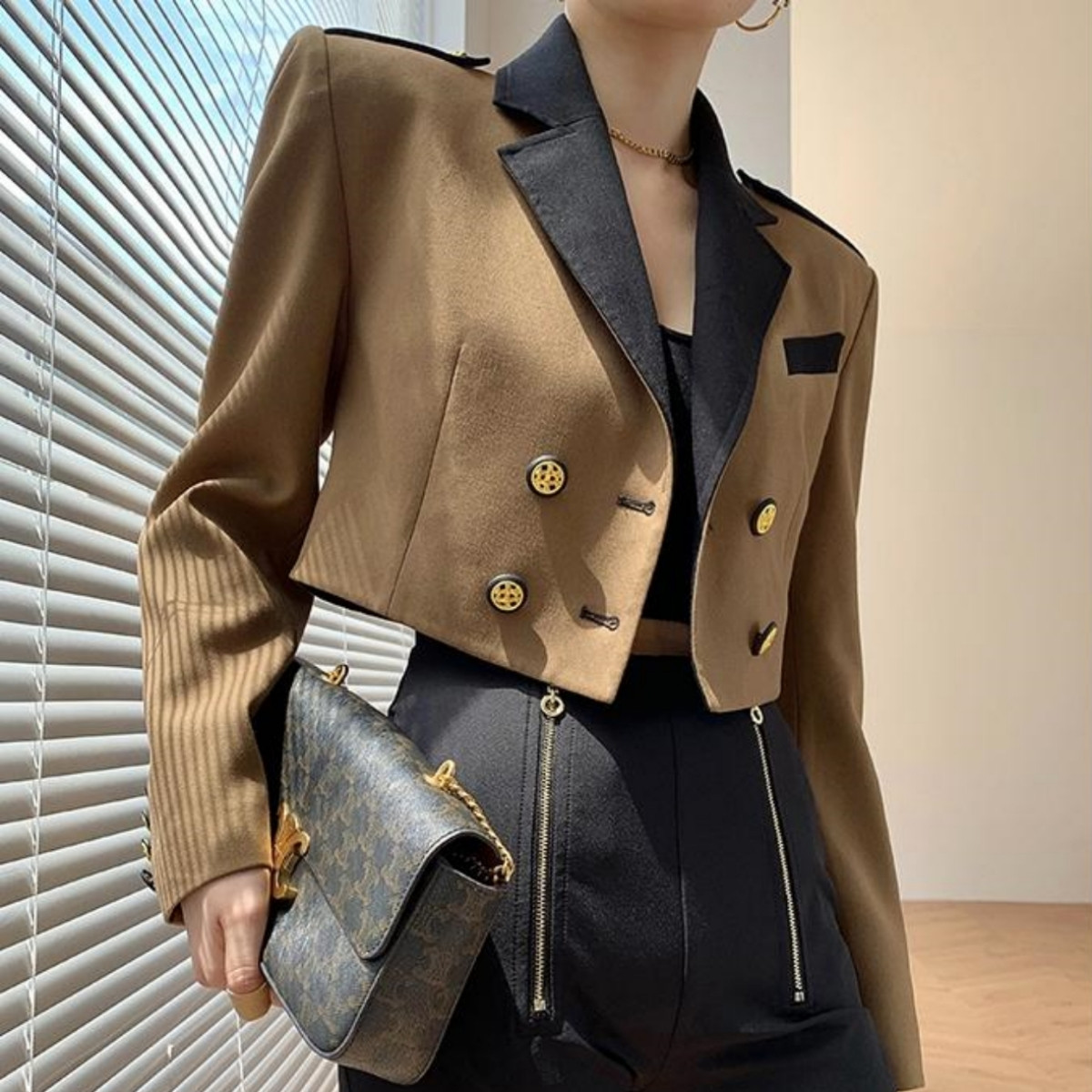 론데즈메종 여성 카라 하이엔드 배색 숏 자켓 하객 봄 가을