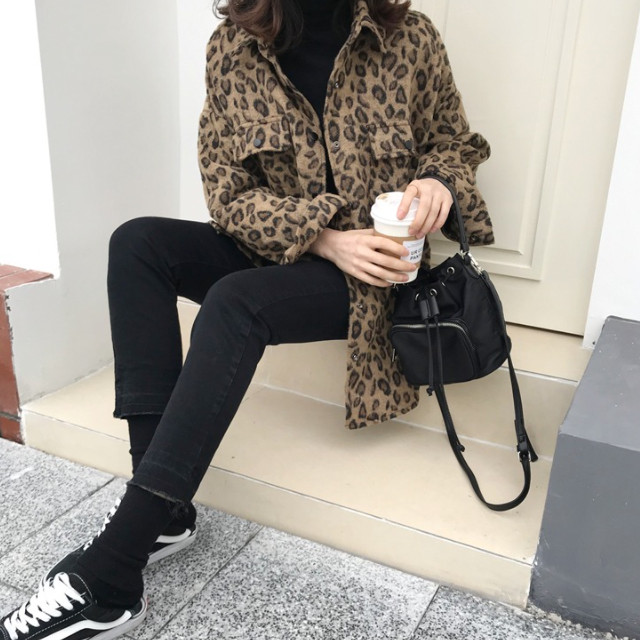 레오파드 패턴 모직 도톰 셔츠 겨울자켓