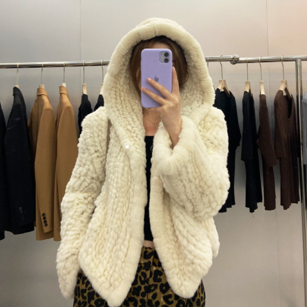 [론데즈메종] 도톰 페이크 토끼퍼 밍크무스탕 후드 숏코트 자켓 2컬러