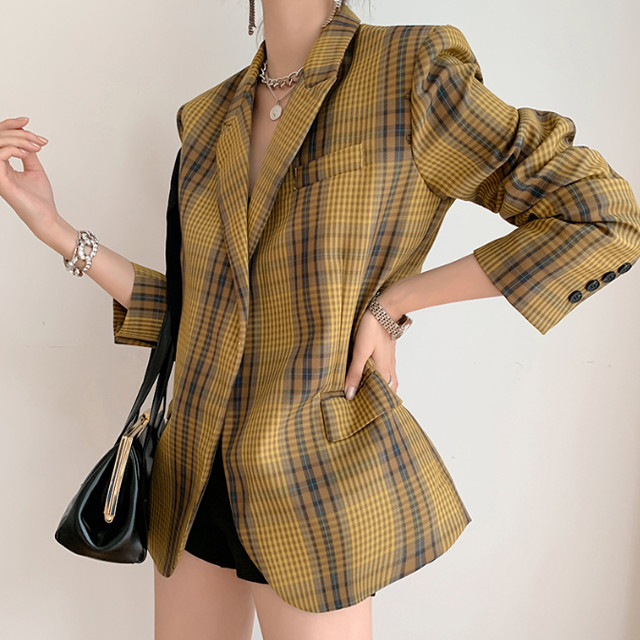 메르헨 트렌디 타탄체크 정장 박시핏 캐쥬얼 자켓