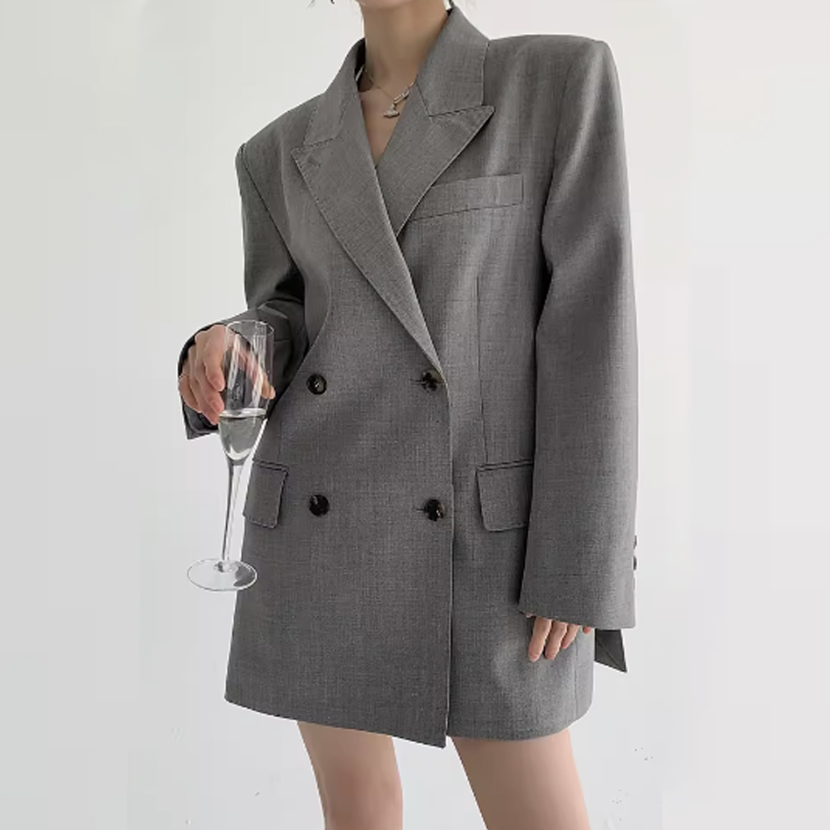 여성 봄 가을 모던 더블 버튼 루즈핏 정장 셋업 자켓 3컬러