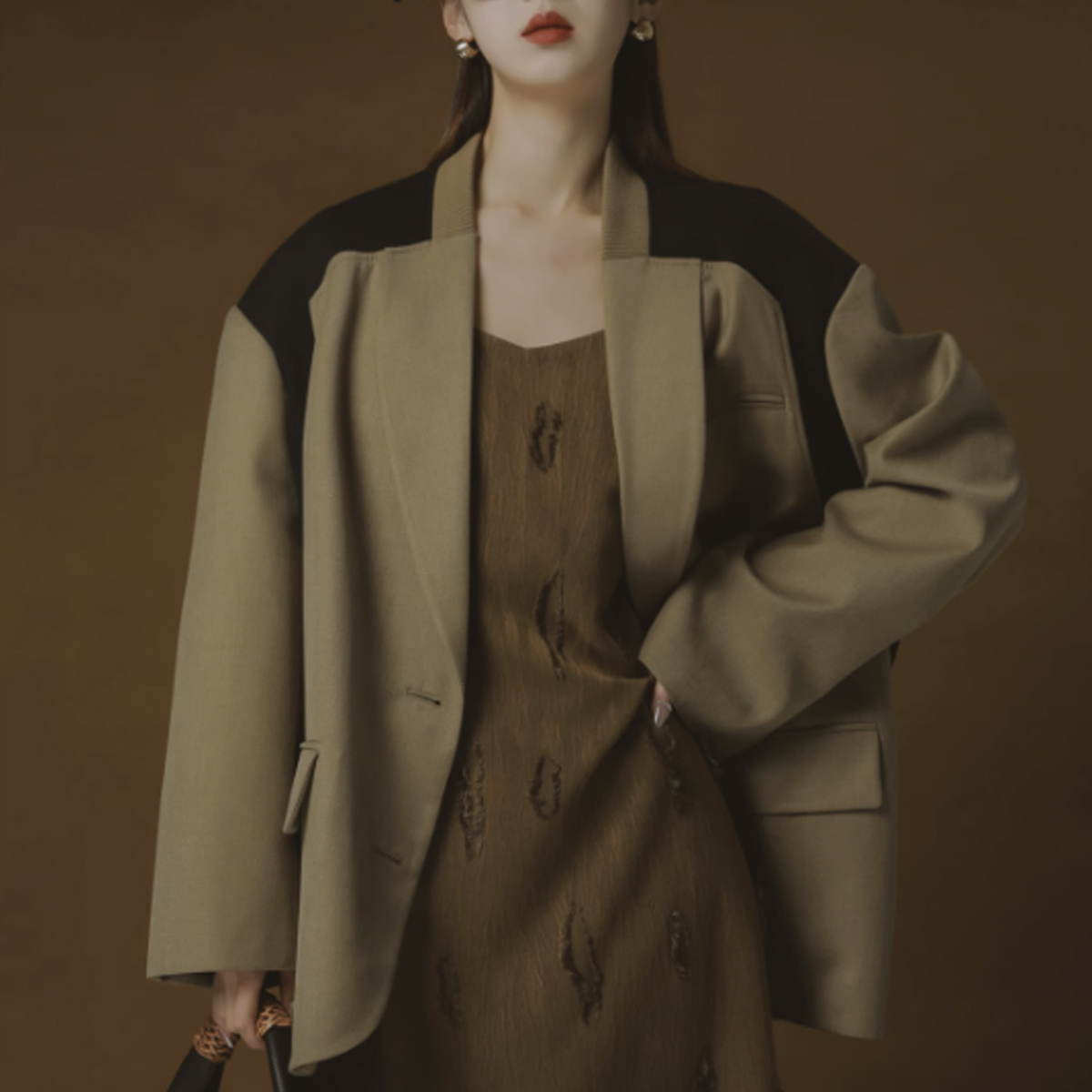 론데즈 여성 배색 클래식 박시핏 오버사이즈 와이드숄더 오버핏 슈트 봄가을 자켓