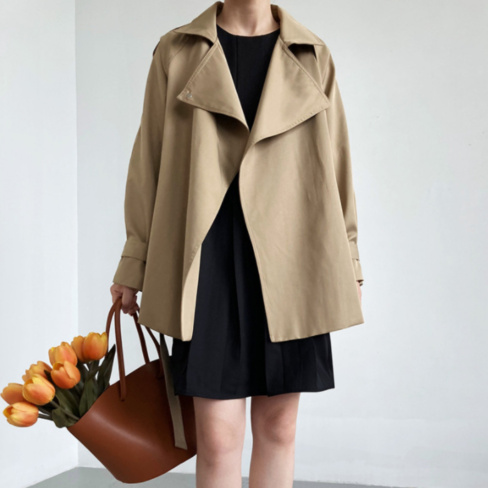 여성 봄 가을 트라이앵글버클 벨티드 간절기 숏 트렌치 코트