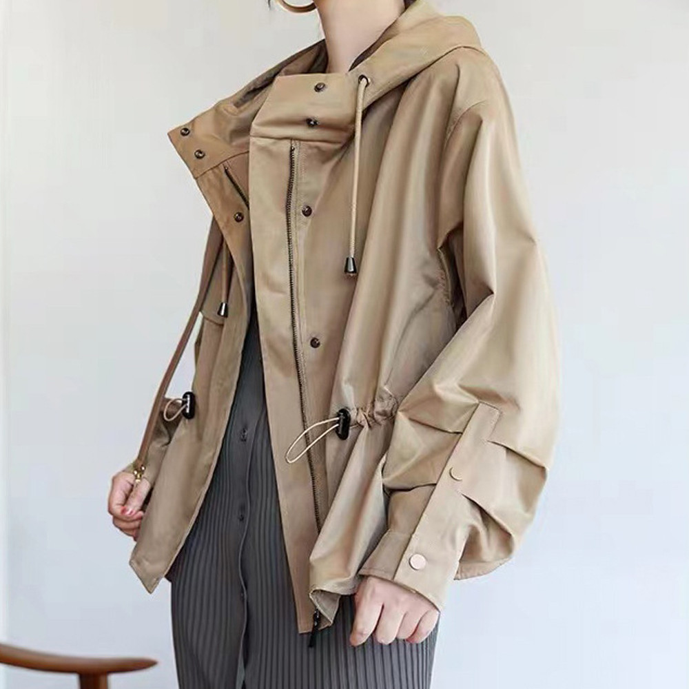 여성 루즈핏 오버핏 숏 바람막이 허리 스트링 야상 후드 사파리 등산용 간절기 점퍼 아우터