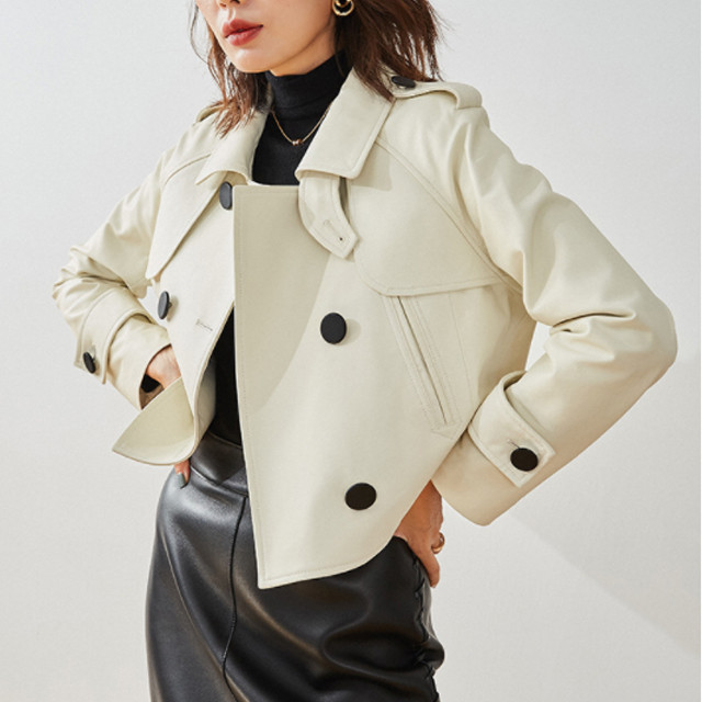 [론데즈메종] 헤리티지 레더 양가죽 숏 트렌치 자켓