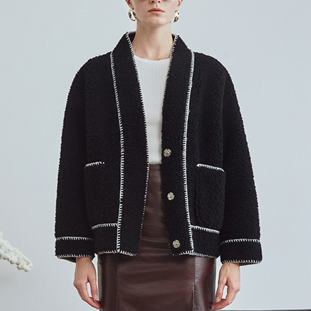 제니 트리밍 리얼 양털100% 모피 코트 가디건 자켓 2컬러