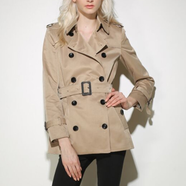 여성 더블 브레스티드 트렌치 레인 숏 미들 코트 자켓 4컬러